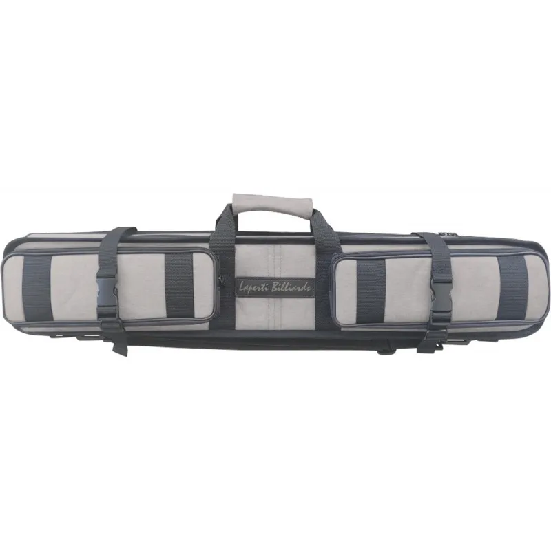 Esta elegante bolsa gris de Laperti es adecuada para 4 mazas y 8 flechas. La bolsa tiene un forro interior para una protección adicional de su taco. La funda tiene una cremallera, correas de cierre negras resistentes y es fácil de llevar con la correa para el hombro.