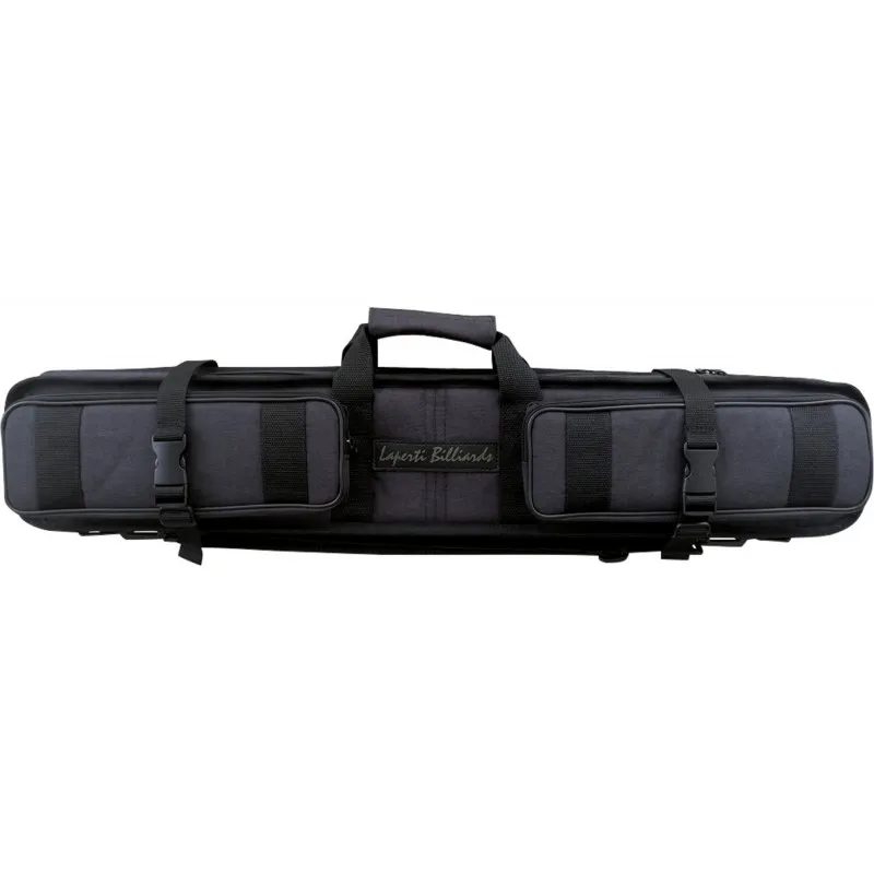 Esta elegante bolsa negra de Laperti es adecuada para 4 mazas y 8 flechas. La bolsa tiene un forro interior para una protección adicional de su taco. La funda tiene una cremallera, correas de cierre negras resistentes y es fácil de llevar con la correa para el hombro.