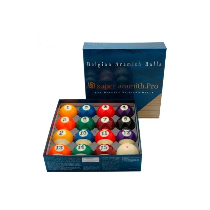 El set Super Aramith Pro está hecho de resina fenólica avanzada, con un centro de gravedad que garantiza un deslizamiento preciso. Su elasticidad está especialmente calibrada por Aramith para un rebote óptimo, permitiendo un control completo sobre cada disparo.