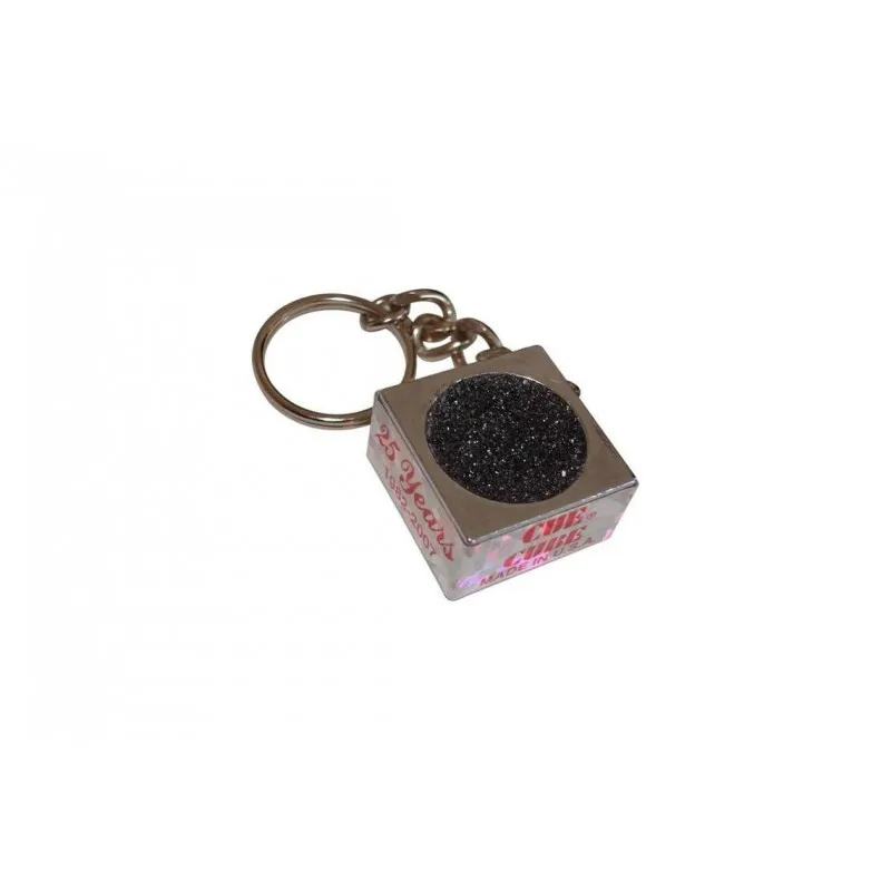 Lija con forma de cubo, en formato llavero. Fabricada en aluminio, y con dos caras.