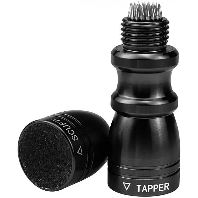 Práctico arreglasuelas 3 en 1, tamaño bolsillo. Esta herramienta 3 en 1 incluye un moldeador, un raspador y los pinchos.