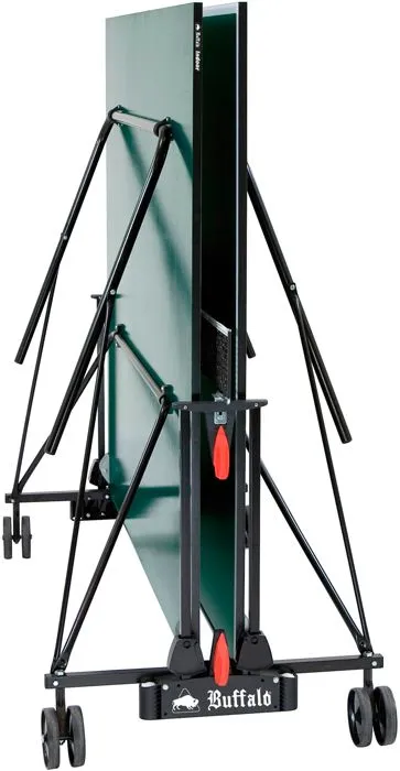 La mesa de ping-pong Buffalo Basic es una mesa de interior sólida con una superficie verde. Es plegable y viene con 4 ruedas dobles, lo que hace que la mesa sea fácil de guardar.