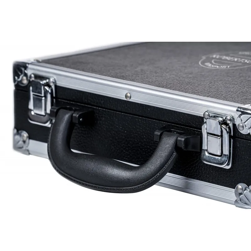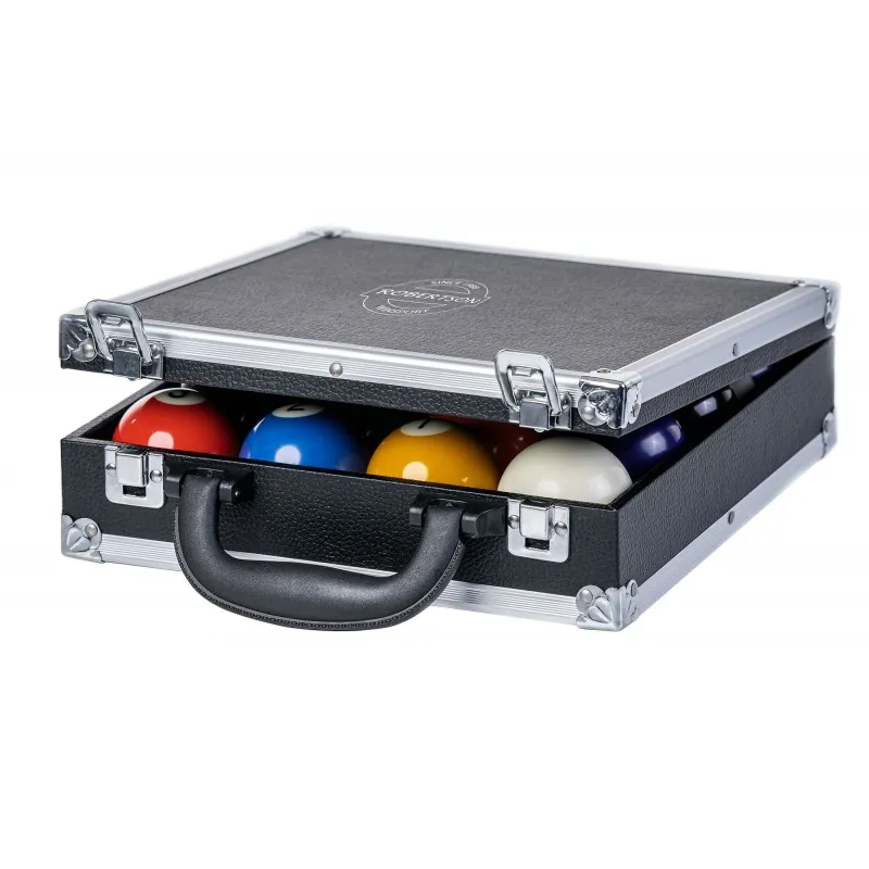 El estuche de bolas es ideal para almacenar y transportar de forma segura sus bolas de billar. Está fabricado con mucha precisión y provisto de llamativas tiras de aluminio para su protección y también con protección de esquinas de color plateado. El robusto estuche está cubierto con una estructura de cuero negro. La tapa está equipada con dos bisagras y dos solapas de bloqueo de seguridad cromadas. El mango de plástico bien proporcionado es muy robusto y está integrado con buen gusto en la parte delantera. Para una perfecta protección de las bolas, la base de espuma está recubierta de piel sintética y provista de curvas de 1 centímetro de profundidad. La tapa acolchada asegura que las bolas se mantengan en su lugar con una presión suave. Capacidad: 16 bolas de billar 57,2 mm Dimensiones: aprox.25 x 25 x 7 cm Peso: aprox. 1,5 kg