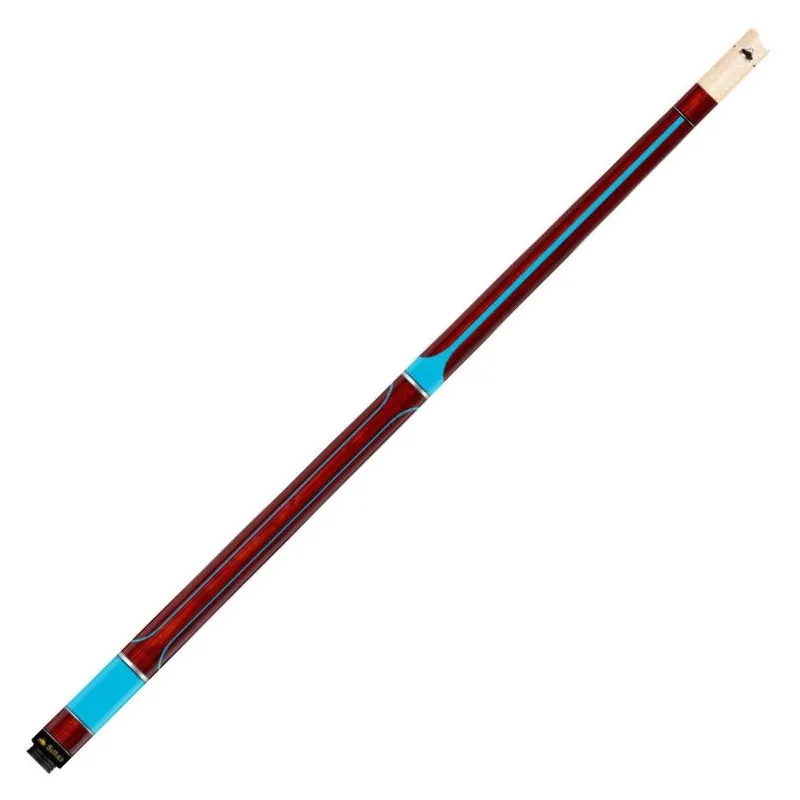 El Elan 8 está lacado en color azul sobre una hermosa madera de arce ojo de pájaro, con líneas turquesas en el mango y anillos de acero inoxidable debajo y encima del mango. Una señal distintiva para el jugador avanzado que quiere llevar su juego al siguiente nivel. Esta serie presenta la articulación de madera simple Buffalo, que ofrece un golpe relativamente suave y, por lo tanto, le da al jugador mucho control y sensación en su juego.