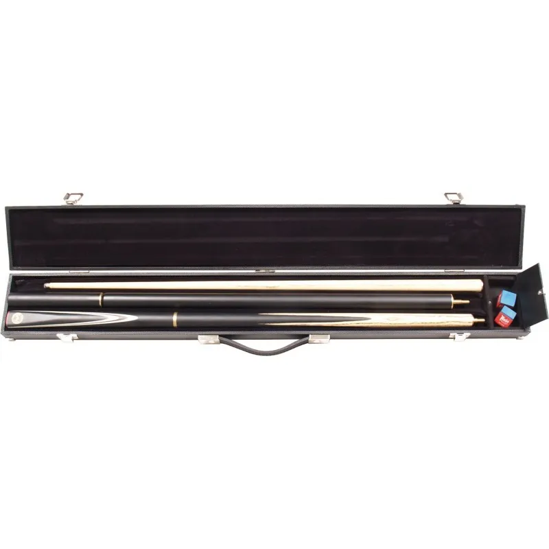 Maletín rígido en color negro, con capacidad para un taco de Snooker de dos piezas, extensiones y tizas.