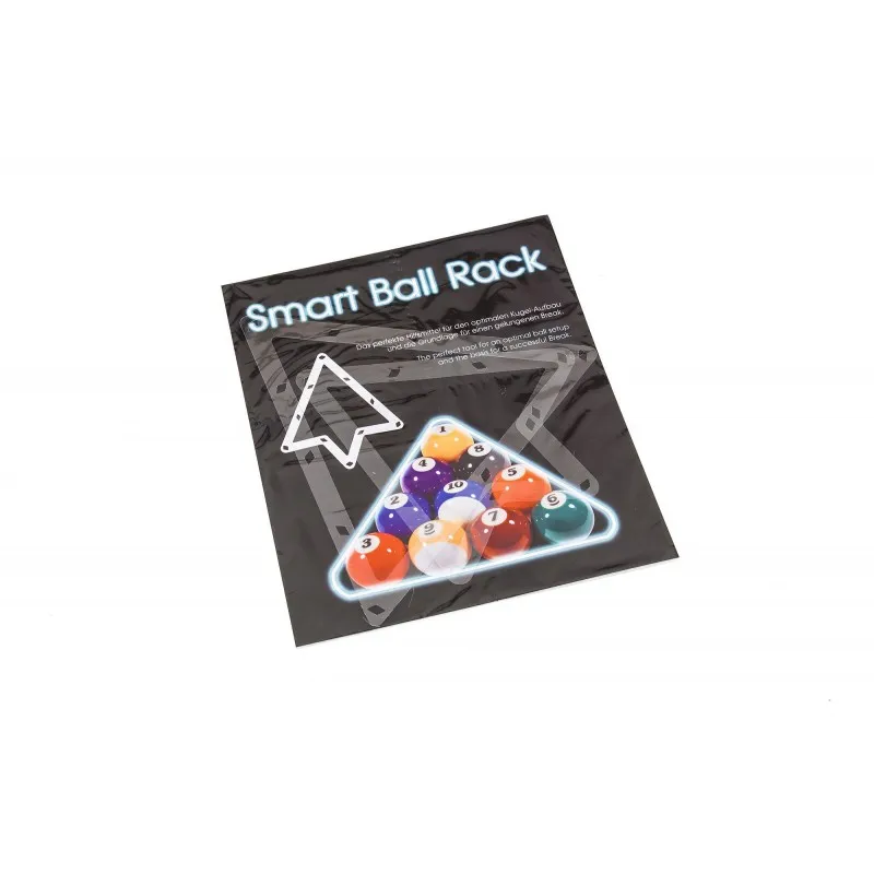 Esta innovadora plantilla perforada asegura una agrupación sin espacios de las bolas de billar. El Smart Ball Rack es fácil de manejar y elimina las interferencias causadas por una mala configuración sin afectar el recorrido natural de las bolas.
